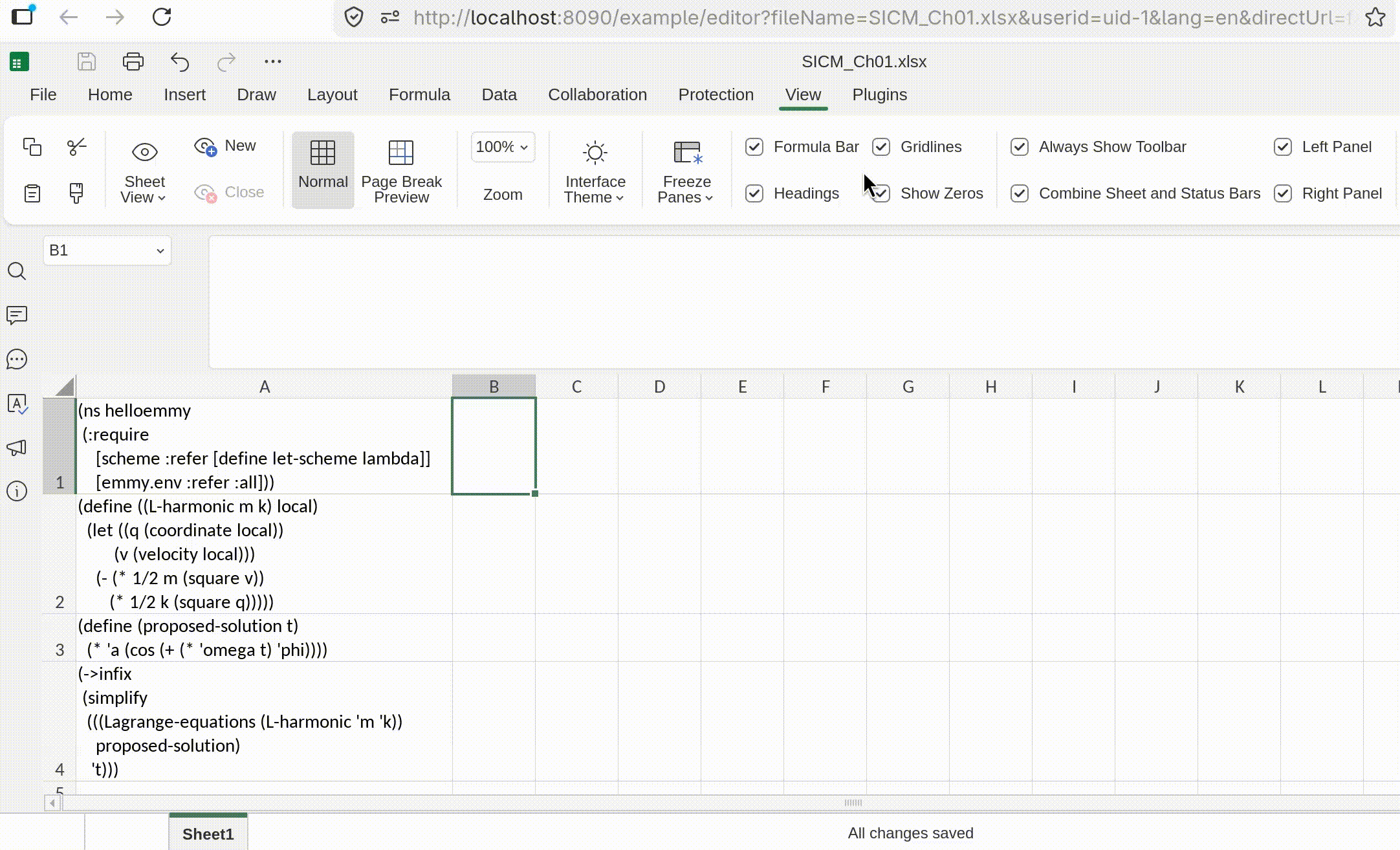 't)))"- a m ω² cos(ω t + φ) + a k cos(ω t + φ)"Of course the EurOffice plugin processes not just Emmy but any Scittle-Clojure code.