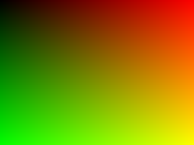fragColor = vec4(gl_FragCoord.xy / iResolution.xy, 0, 1);