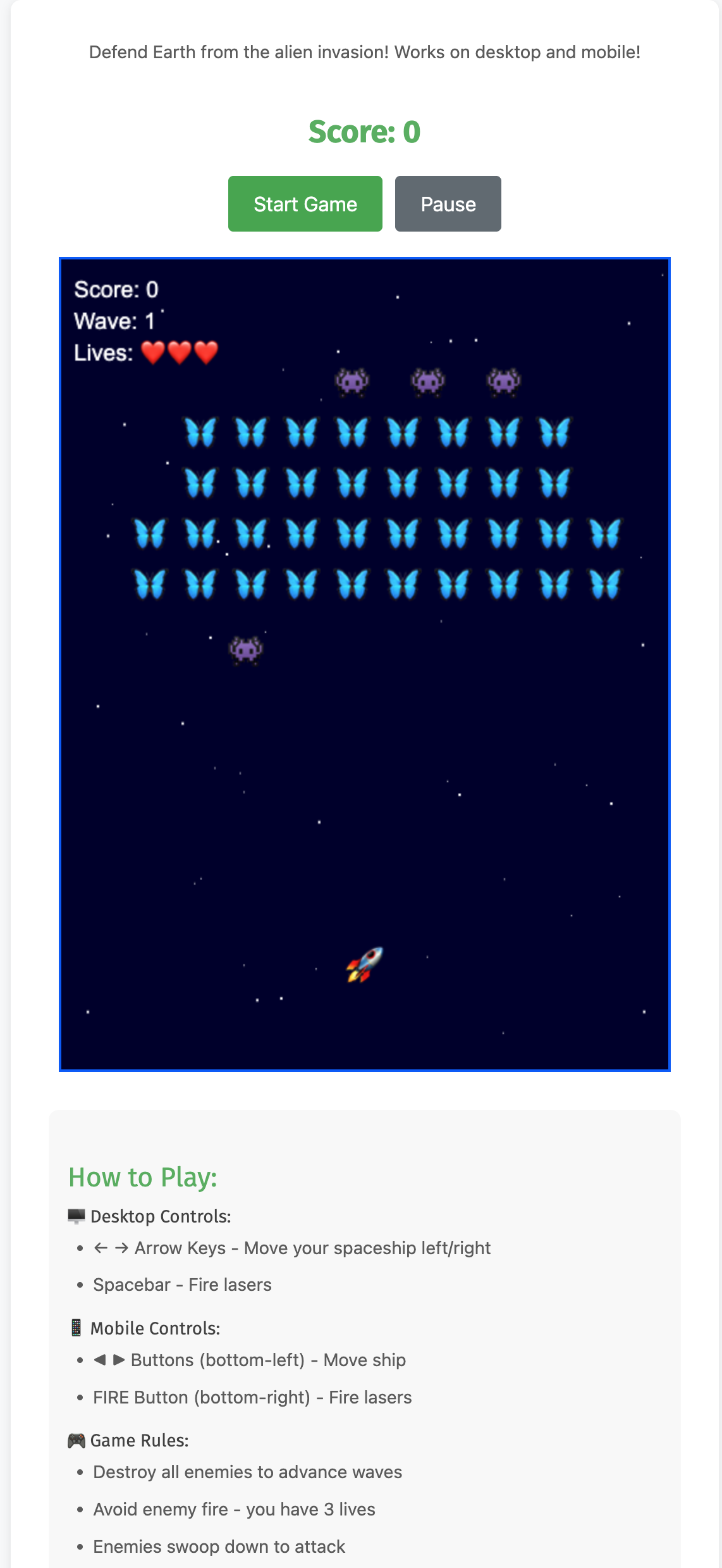 Recreate the classic Galaga arcade game with formation patterns, swooping enemies, and intense space combat - all running in the browser with zero build tools!