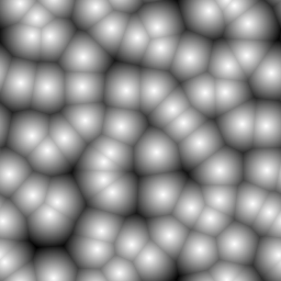 Worley noise is a type of structured noise which is defined for each pixel using the distance to the nearest seed point.